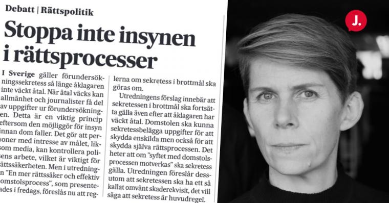 Om det nya utredningsförslaget kring sekretess i brottmål blir verklighet innebär det slutet för insyn i rättsprocesser i brottmål. Det skriver vår förbundsordförande Ulrika Hyllert i SvD.